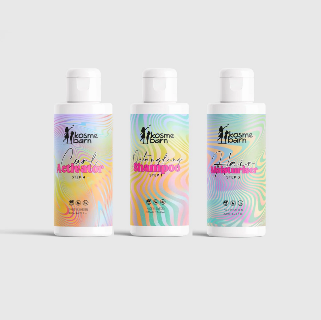Kosmebarn erbjuder naturliga och skonsamma hud- och hårvårdsprodukter för barn och tonåringar (3–17 år), inklusive schampo, balsam, fuktgivande hårkrämer, handgjorda tvålar och läppglans.
